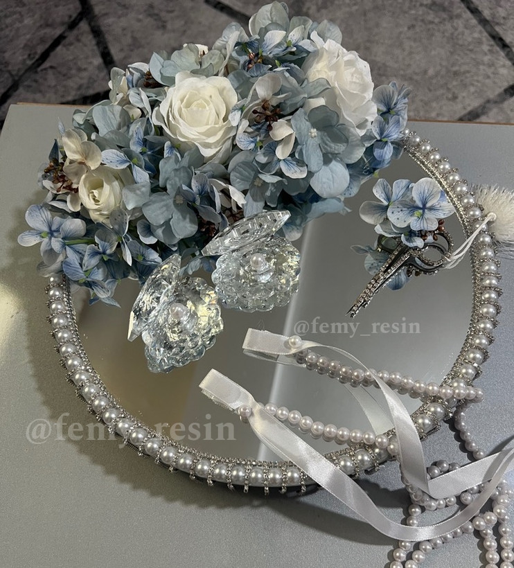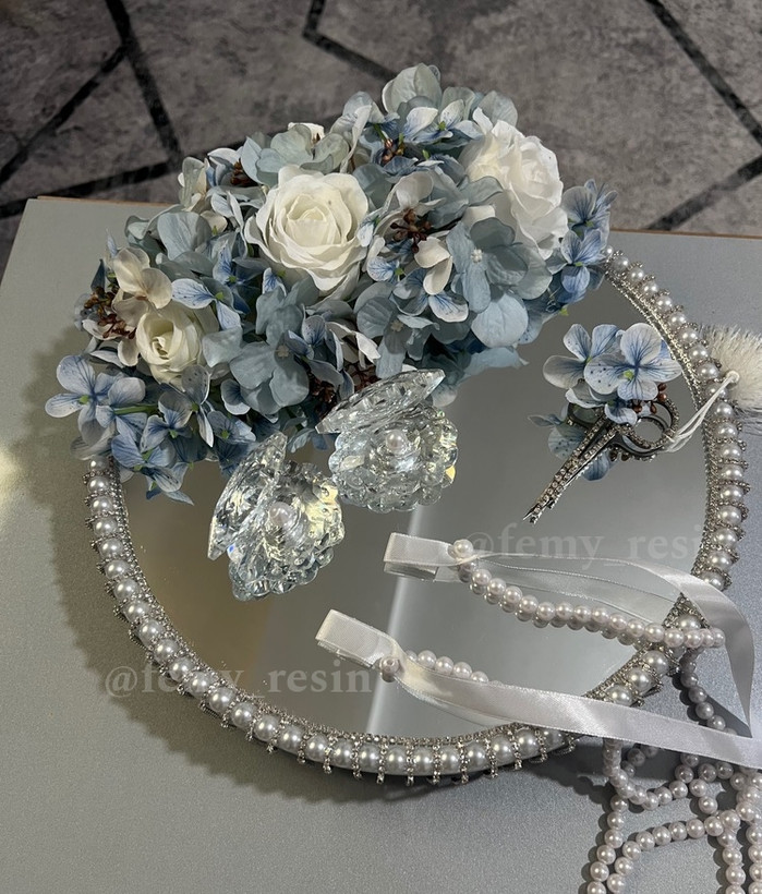 استند جاحلقه ای با دیزاین گل رز و شکوفه آبی